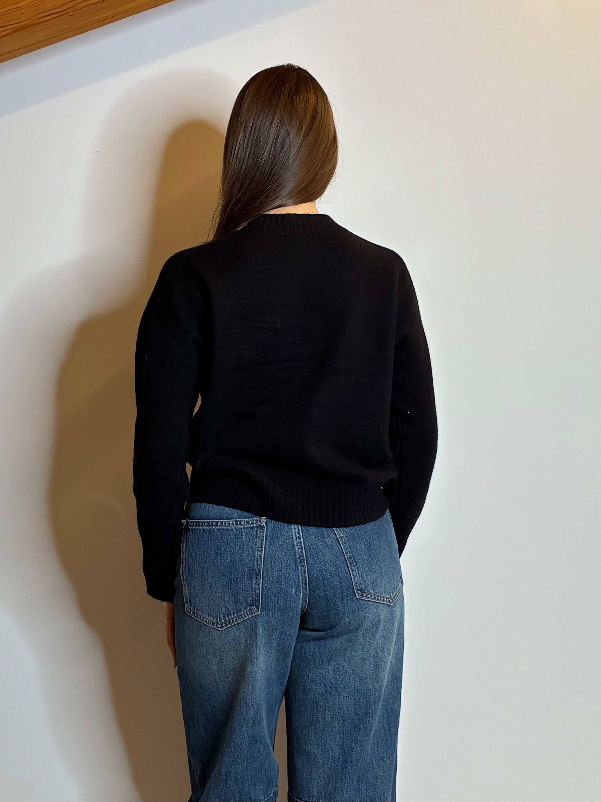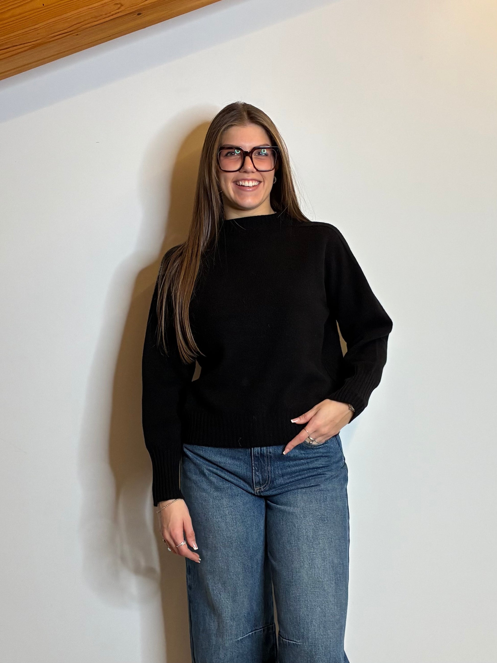 Maglione in 100% lana, dettaglio girocollo aderente, orli e polsini in maglia a coste, spalla scesa.
