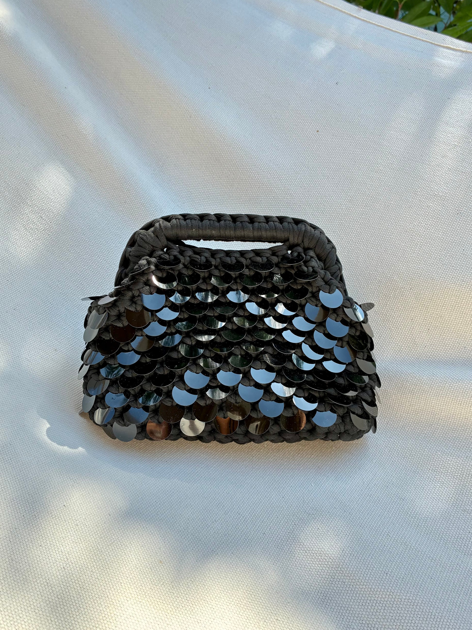 Clutch Sparkling Nero limited edition con paillettes; misura della borsa: 25x20cm.