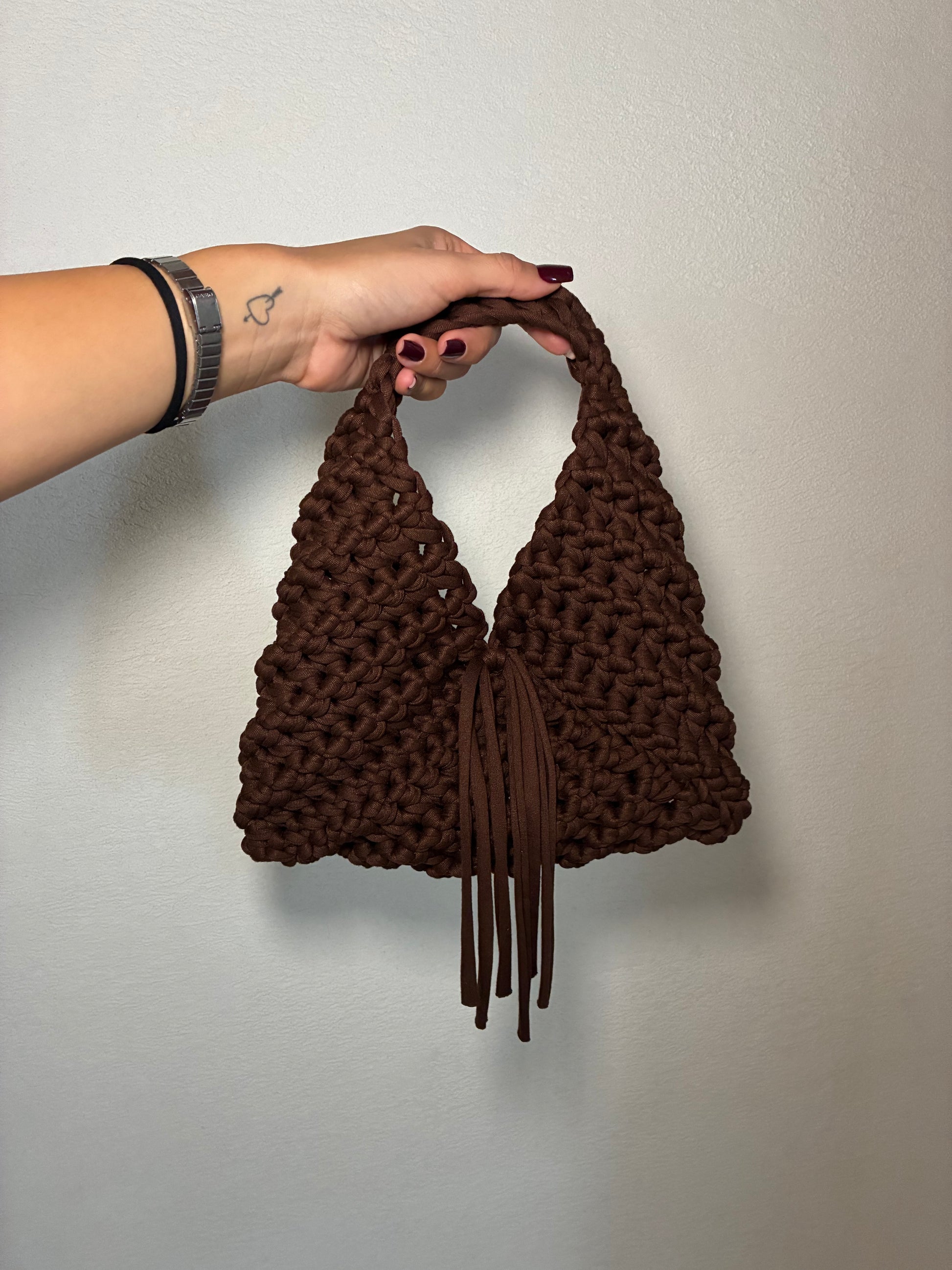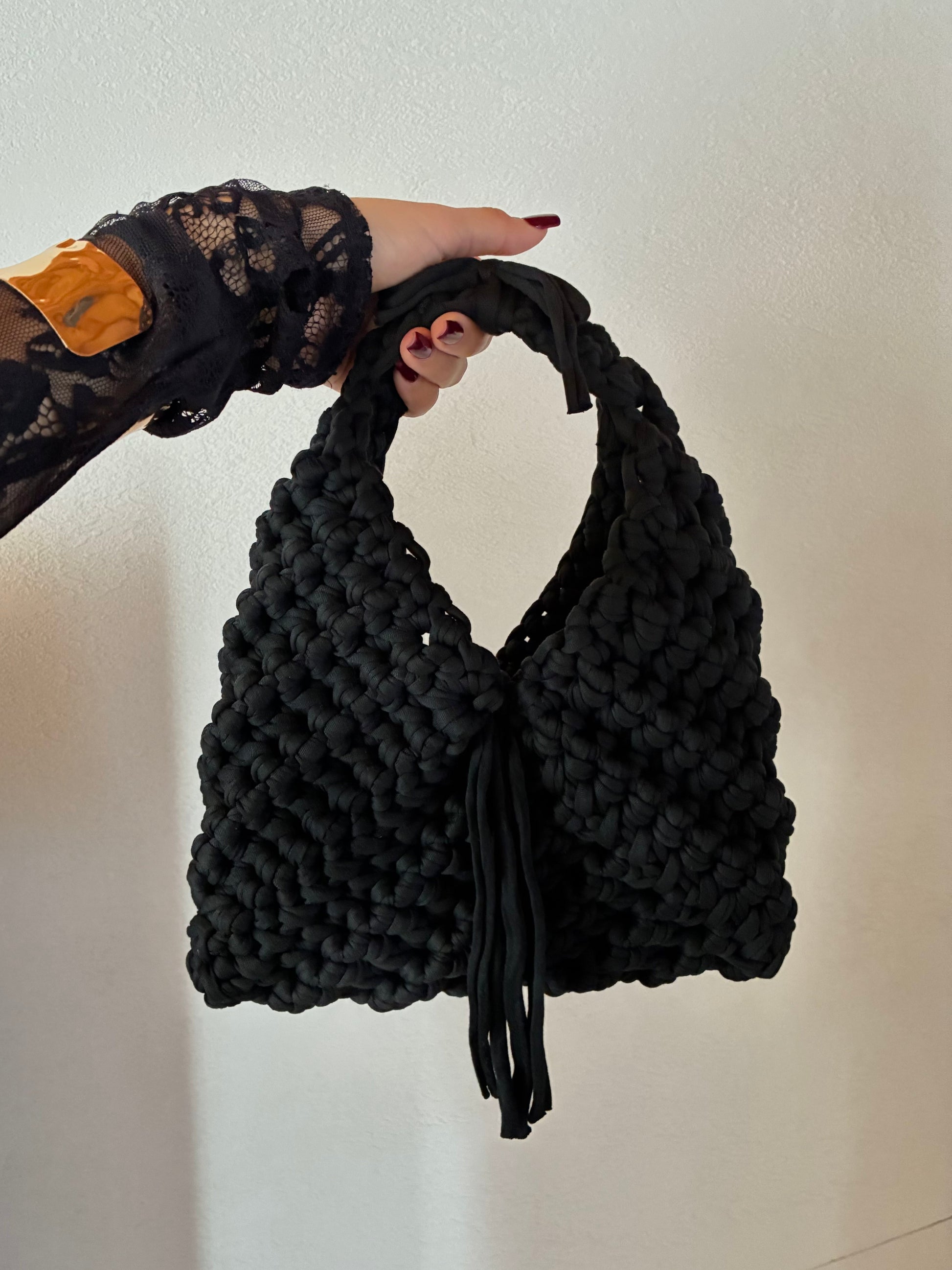 Borsa da indossare a mano, realizzata con filato 95% poliestere 5% elastan.